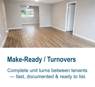 Rental repairs and turnovers handled professionally from start to finish.