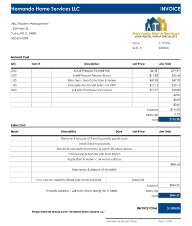 ✔ Labor & materials separated